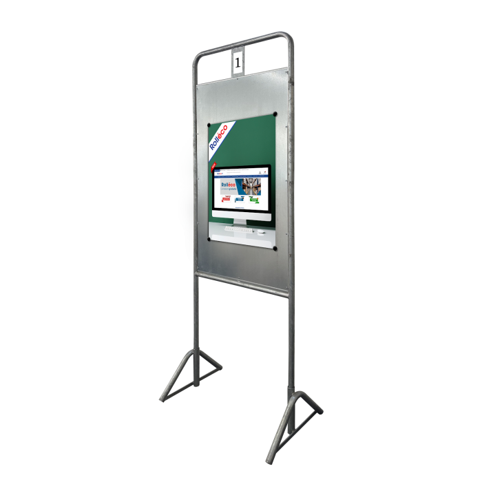 - Panneau d’affichage extérieur double face avec cadre en tubes galvanisés ronds.